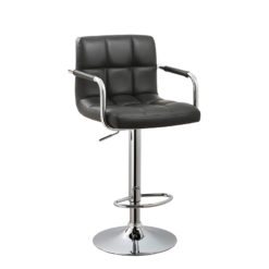 Casual sophistication meets a futuristic touch with this barstool. Upholstered in supple leatherette with grid style lines, this barstool features polished chrome arm rests, foot rest, and adjustable pedestal stand. This barstool features an adjustable height of 24″-33″ and a 360° swivel.