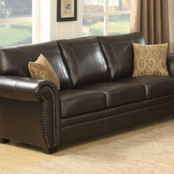 Express your sophisticated taste of style with this classic 3pc. sectional and storage ottoman set. The Louis has been elegantly designed with rolled arms, and accented with antique brass nail head trim. The soft, leather gel treated fabric that has the hand of high-end Italian leather has been wrapped over a hardwood frame that is corner blocked and glued for extra durability. A sinuous springs system has been combined with cushions that contain 1.8 density foam that sit atop a layer of pocketed coils to provide you the ultimate seating comfort. You will enjoy entertaining or just relaxing in this traditional yet elegant sectional in our Louis collection.